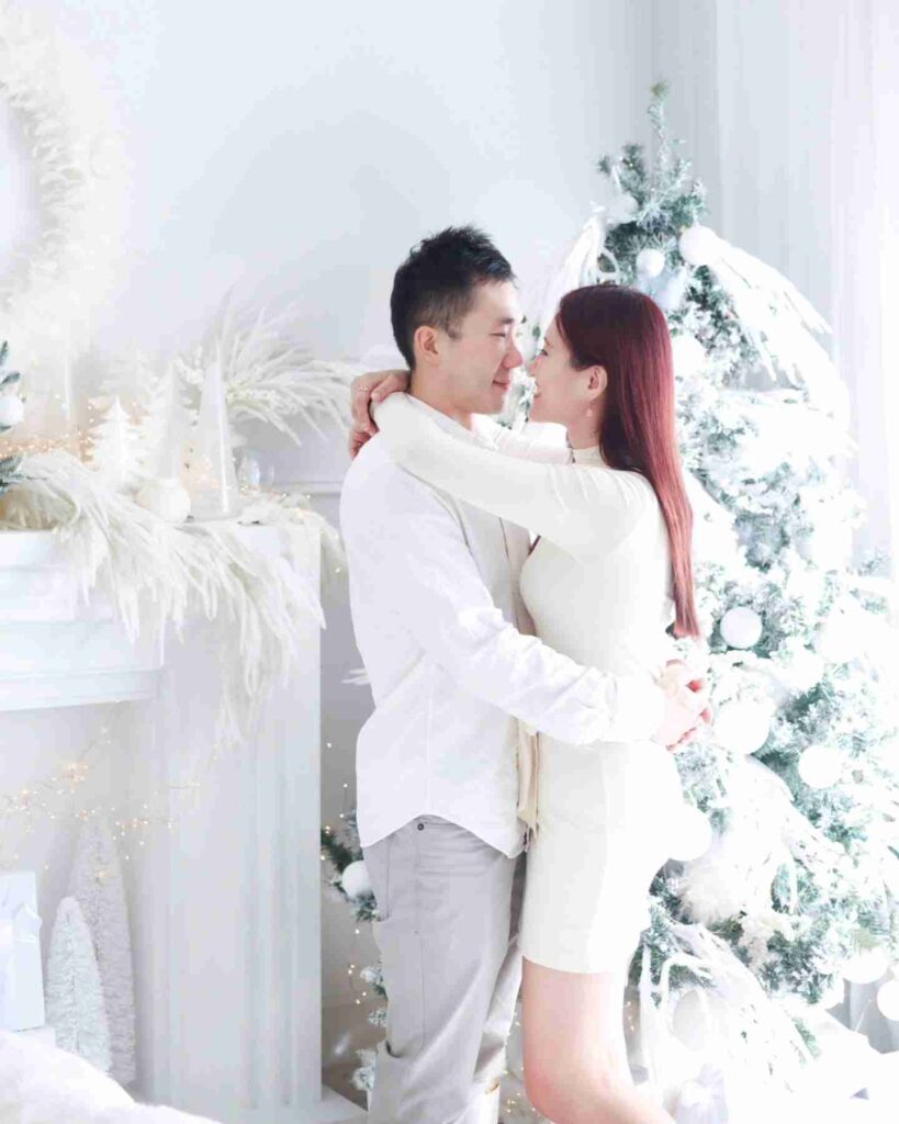 Match the winter magic in all-white outfits this Christmas. A pure, elegant, and picture-perfect couple look for the holiday season.