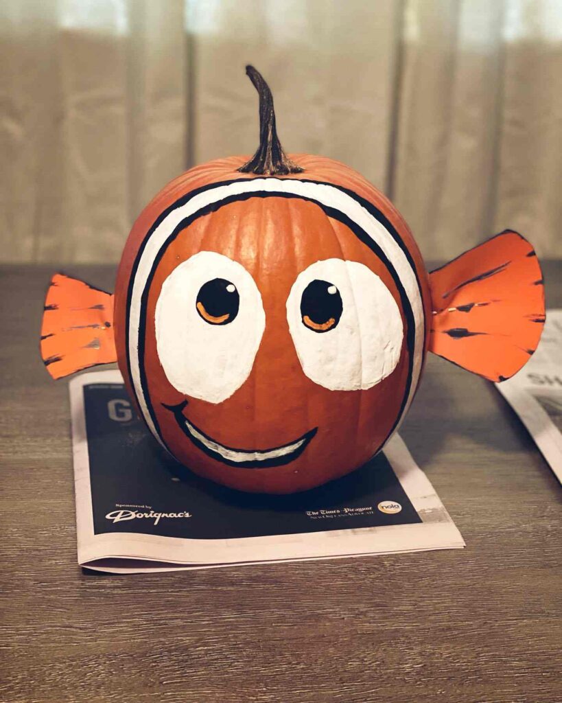 Just grab some orange, white, and black paint to bring Nemo’s signature stripes to life right on your pumpkin.