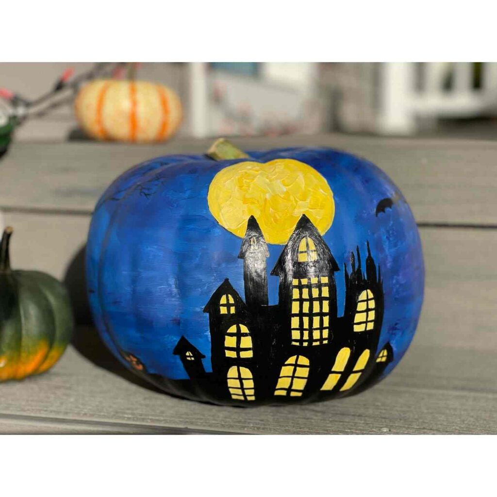 Imagine turning your pumpkin into a spooky, creepy masterpiece with a horror painting of a castle under a huge glowing moon.
