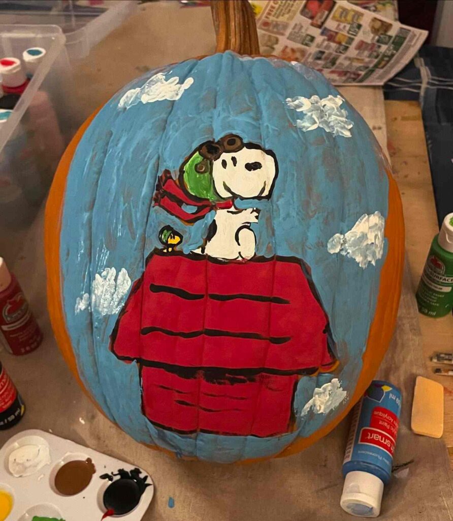 A Snoopy pumpkin painting for Halloween is a sweet and nostalgic way to decorate this season!