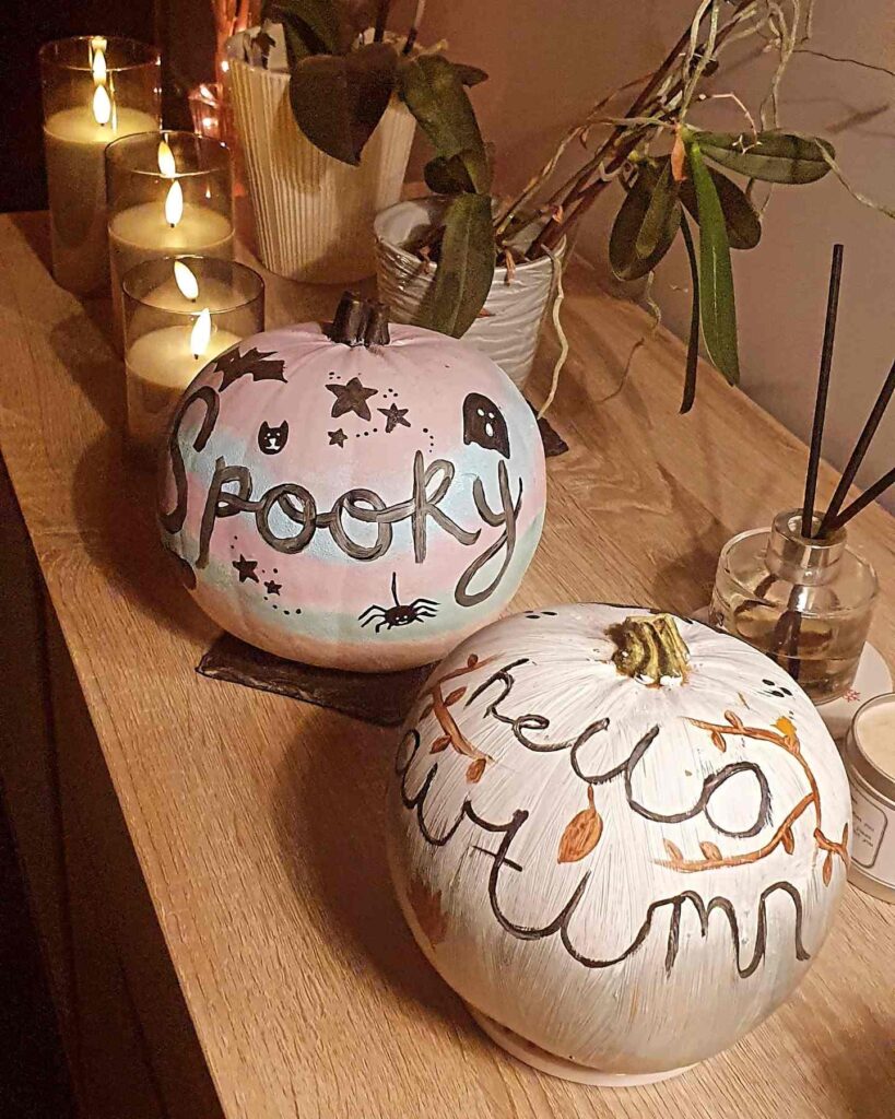 You can even write a Halloween word like BOO or EEK in bold letters for instant charm. This style is low-effort but still gives you a pumpkin that looks creative and seasonal.